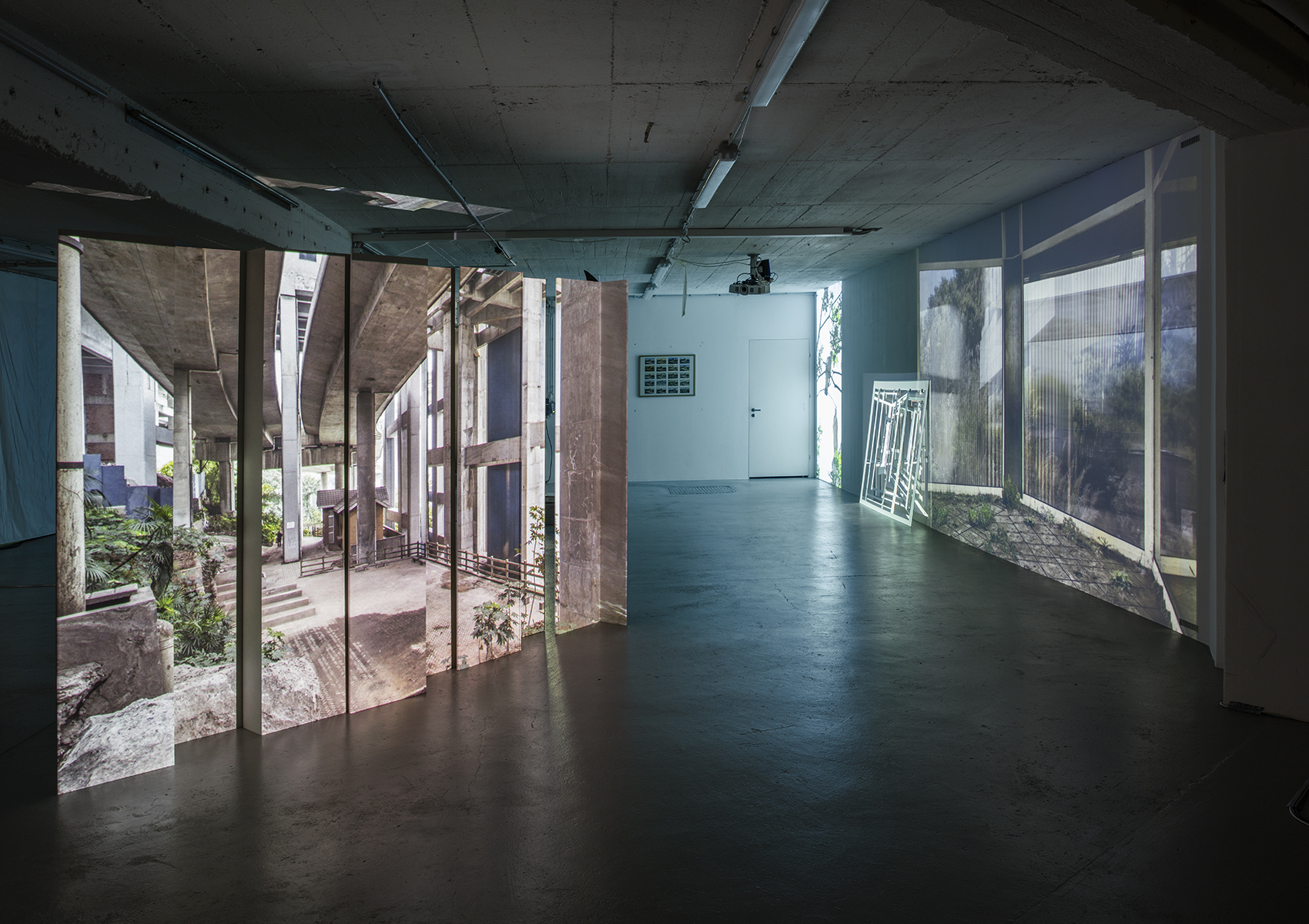 BILD 2: Bilder von Brückenbauwerken in Chongching/China projiziert auf Gipskarton, rechts Projektion von Xénia lmrová